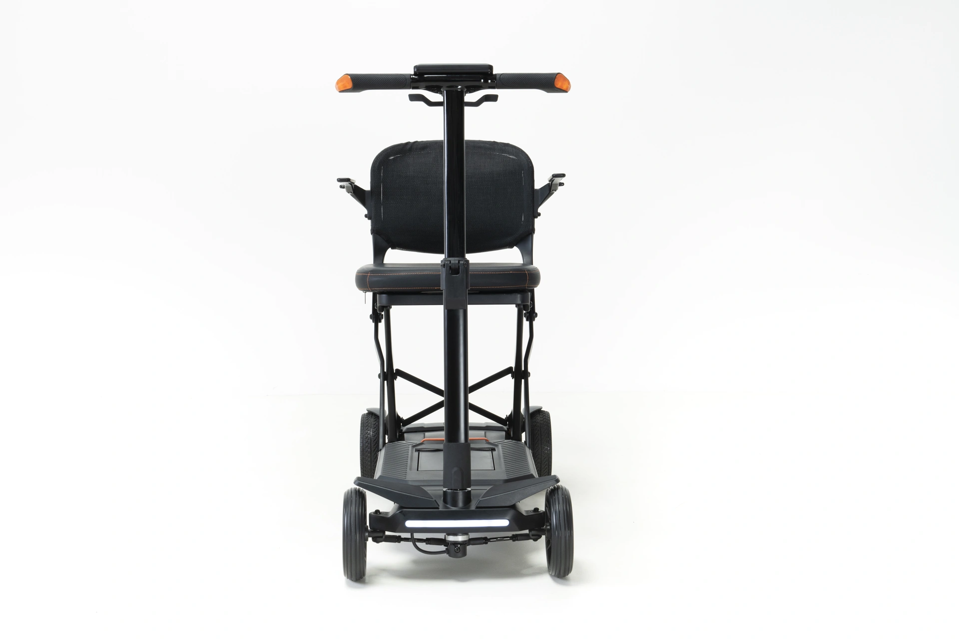 Comfort has also been carefully considered. The ergonomic seat and supportive backrest provide a comfortable riding position, while the intuitive delta‑style tiller makes steering easy for users with limited hand strength. The scooter’s stable wheel configuration ensures a smooth and balanced ride, and the puncture‑proof tyres eliminate the worry of flats. Every detail has been designed to deliver a comfortable, stress‑free mobility experience.