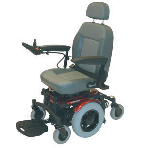 The Twin motor mid-wheel drive system enables the machine to turn in a 360 degree circle within its own length. Armrests are height and width adjustable and furthermore the footplate is also height adjustable.