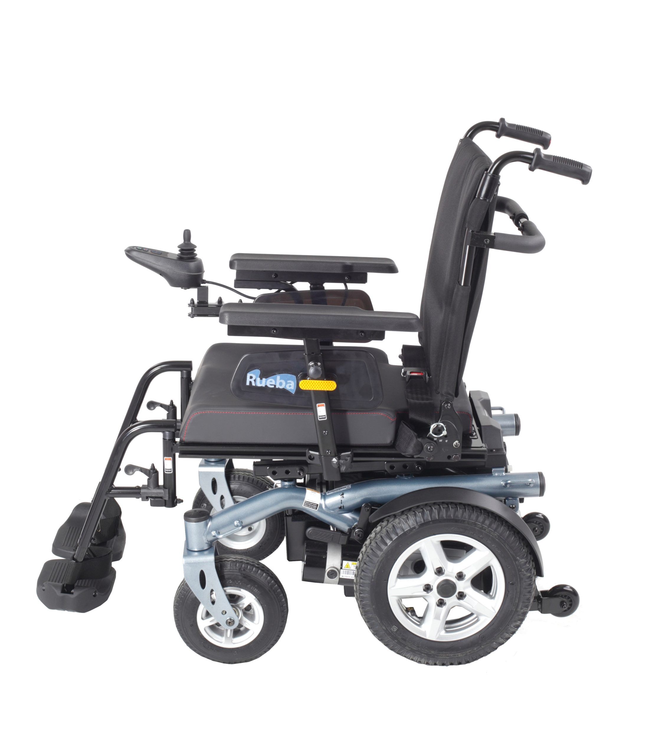 Rascal Rueba Powerchair is 4 mph Rear-Wheel Drive powerchair suitable for indoor and outdoor use comes with 55Ah batteries as standard and features a flexible seating system with a removable 18″ seat cushion enabling bespoke adaptations. Stylish and durable, this powerchair is only available in the Silver Blue.